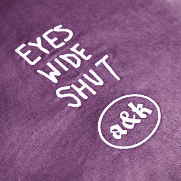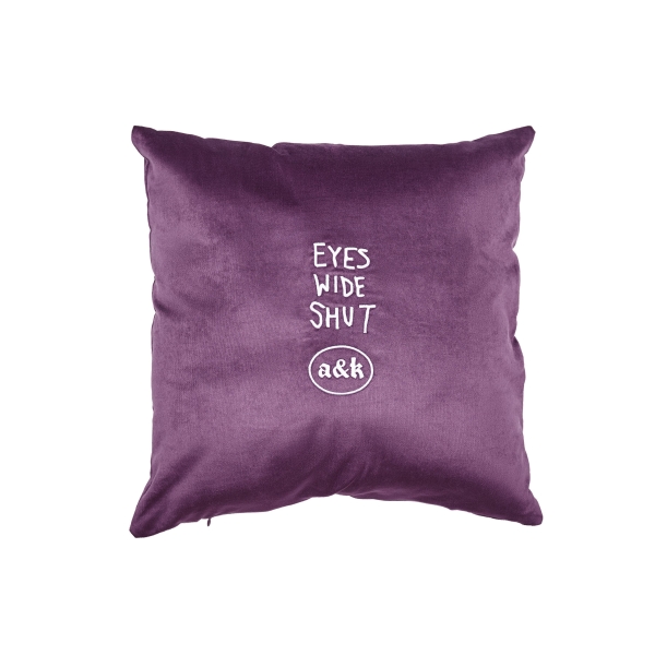 Cojín Amber&Key de terciopelo púrpura con cremallera. Bordado inspirado en la película "Eyes Wide Shut". El morado y el azul, los colores principales de "Eyes Wide Shut", inspiraron el color de la almohada. En el interior, un cojín de fibra sintética para prevenir alergias. Composición principal: 100% algodón orgánico pesado de primera calidad, tejido en Portugal. Tamaño 45*45 cm. 100% algodón, material: terciopelo. Relleno del cojín: 100% poliéster hipoalergénico.