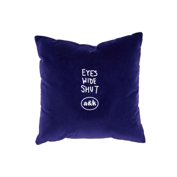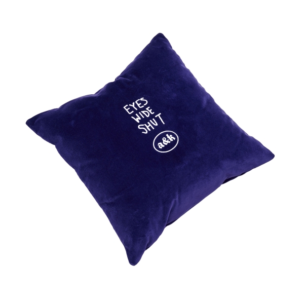 Coussin bleu Amber&Key en velours avec une fermeture éclair. Broderie inspirée du film "Eyes Wide Shut". Le violet et le bleu, couleurs principales d' "Eyes Wide Shut", ont inspiré la couleur de ce coussin.L'intérieur est un coussin rempli de fibres synthétiques pour prévenir les allergies. L'article est fabriqué en coton épais biologique de qualité supérieure, tissé au Portugal. Taille 45*45 cm. 100% coton, matière: velours. Rembourrage du coussin: 100% polyester hypoallergénique.