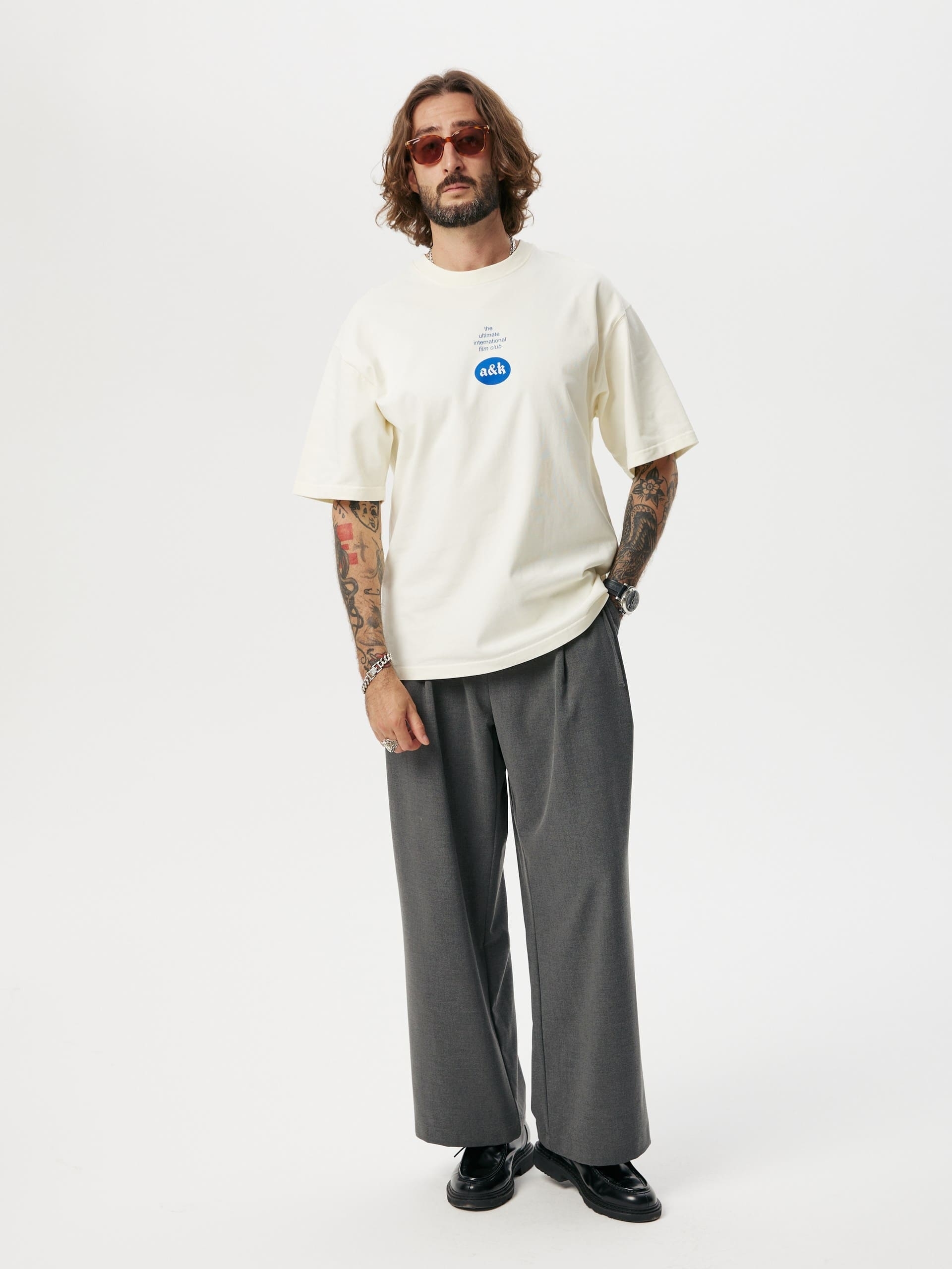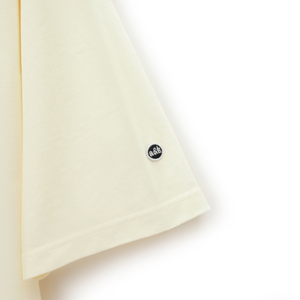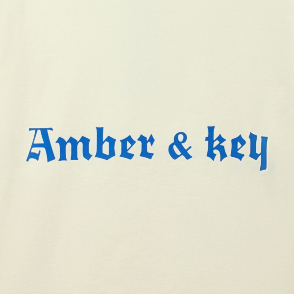 Ivory cotton t-shirt Amber&Key. Relaxed silhouette, dropped shoulder line. Simple blue prints with brand symbolism on the front and back. Featuring a logo patch on the left sleeve. White t-shirt "Film Club" is an ideal base for your wardrobe. Main composition: 100% premium quality heavyweight organic cotton, woven in Portugal. 320g, 100% cotton.