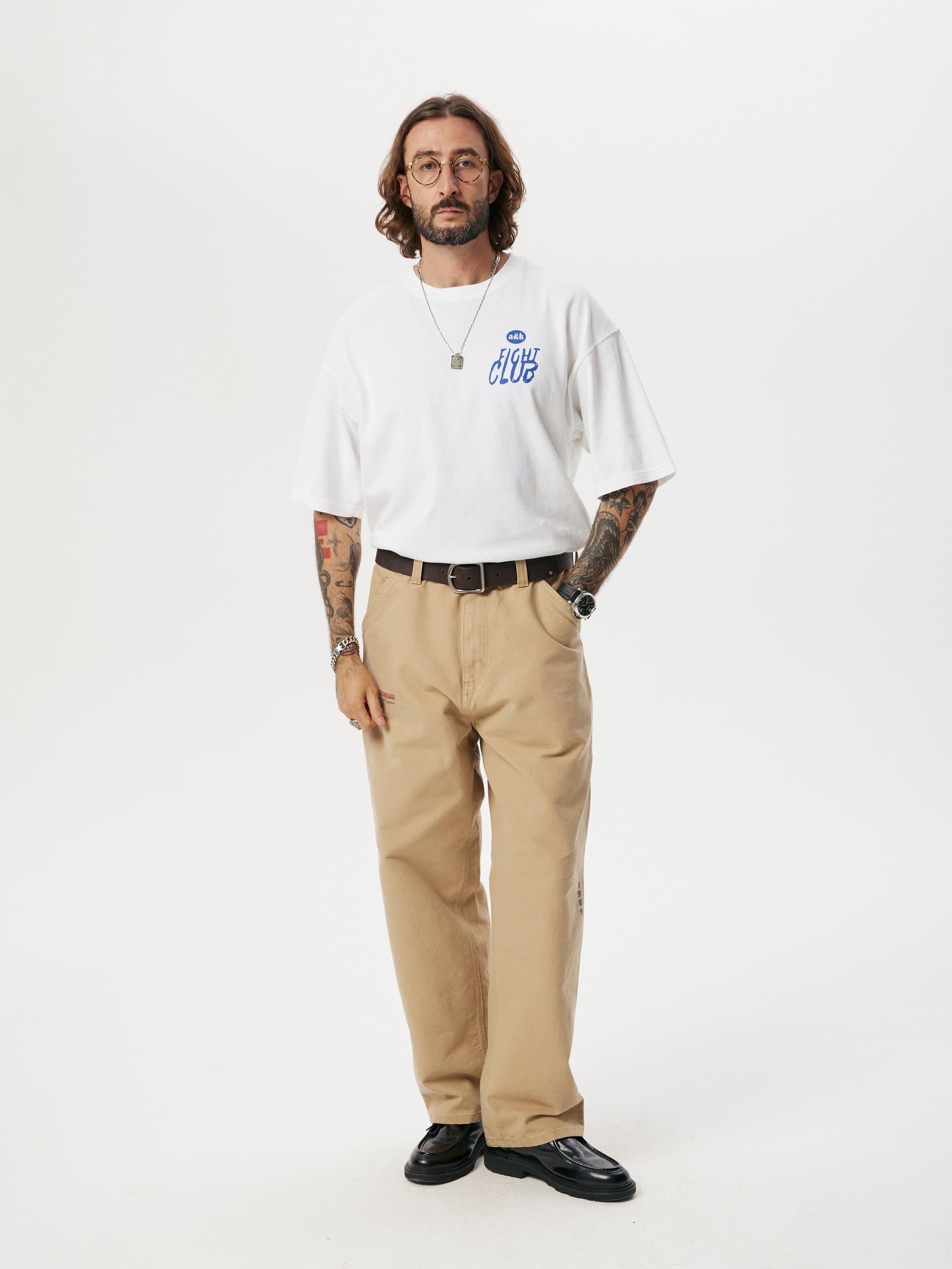 Crafted from premium organic cotton, this Amber&Key t-shirt features a relaxed, oversized silhouette with dropped shoulders for a laid-back vibe. Prints on the front and back add a striking visual touch. The back graphic, inspired by the iconic Fight Club movie poster, reinterprets its key characters and signature soap bar through the distinct aesthetic of A&K. Main composition: 100% premium quality middleweight organic cotton, woven in Portugal. 220g, 100% cotton.