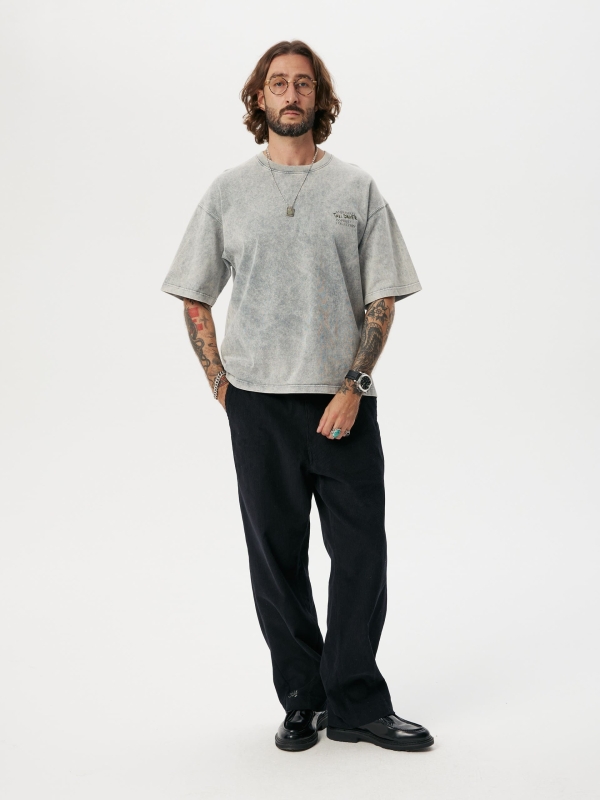 Amber&Key’s grey melange t-shirt is crafted from washed cotton. Featuring a relaxed, loose silhouette and dropped shoulder design. The front and back are adorned with prints. The chest print is enhanced by intricate embroidery. A digital print on the back references a grainy photograph, evoking a cinematic aesthetic. This piece draws inspiration from the final scene of the movie: the protagonist gives his love interest a ride, and their eyes meet in the rearview mirror. Main composition: 100% premium quality heavyweight organic cotton, woven in Portugal. 100% open-end cotton (270g).
